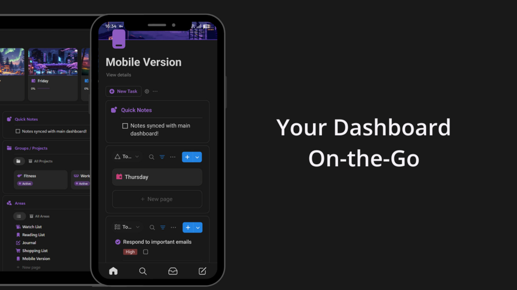 • Areas (optional extras). Journal, reading list, watch list, and a simple shopping page. Use them if they help, hide them if they don’t.