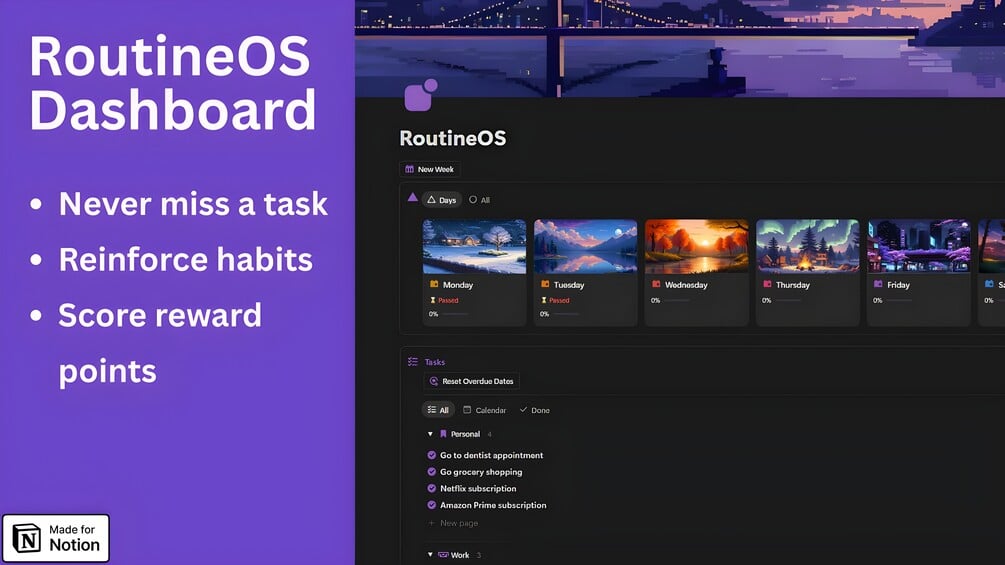 This Notion dashboard puts all your tasks, goals, and projects into one clear, visual space. You’ll know exactly what to do today, what’s coming up, and how far you’ve progressed, without hopping between apps.